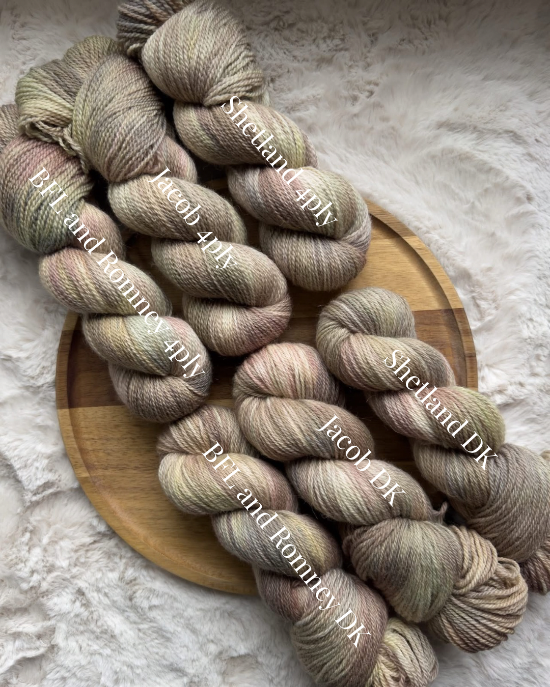 BFL and Romney 4ply: 100% Irish Bluedfaced Leicester and Romney, 350m (382y) per 100g, 2ply